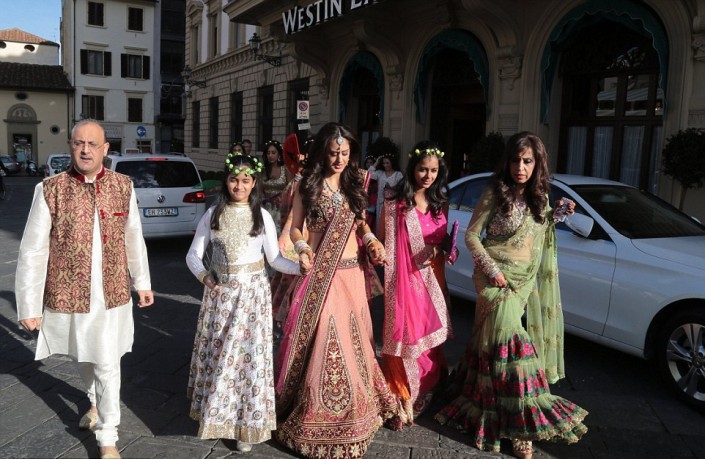 Торжества длились три дня в одном из самых красивых и романтичных городов Италии - Флоренции. На свадьбу прибыло около 500 гостей. Их разместили в самых шикарных отелях. Команда высококлассных поваров постоянно обслуживала гостей церемонии.