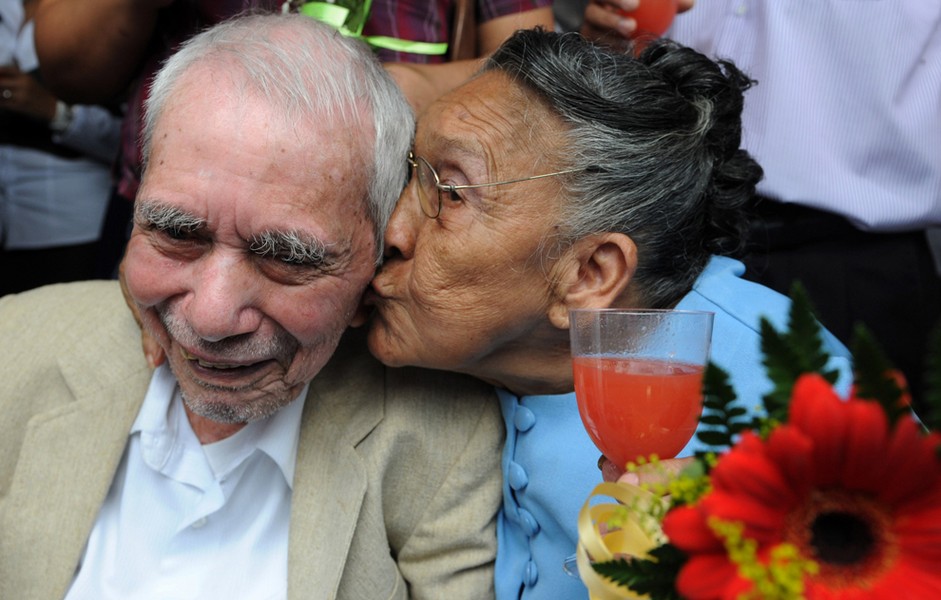 7. Самые пожилые участники массовой свадьбы в Гондурасе. Невесте 75, а жениху - 87 лет.