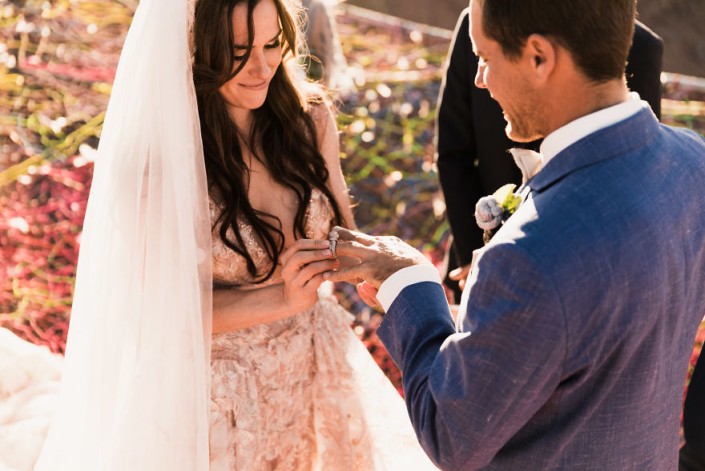 Свадебная церемония влюбленных из США прошла на высоте 122 метра. Молодые связали себя узами брака на растянутой сетке над каньоном Моаб, который находится в южной части Юты и славится своим марсианским пейзажем. Фотографы Эбби и Каллен Хирнс запечатлели экстремальное бракосочетание, сделав потрясающие и захватывающие дух снимки.