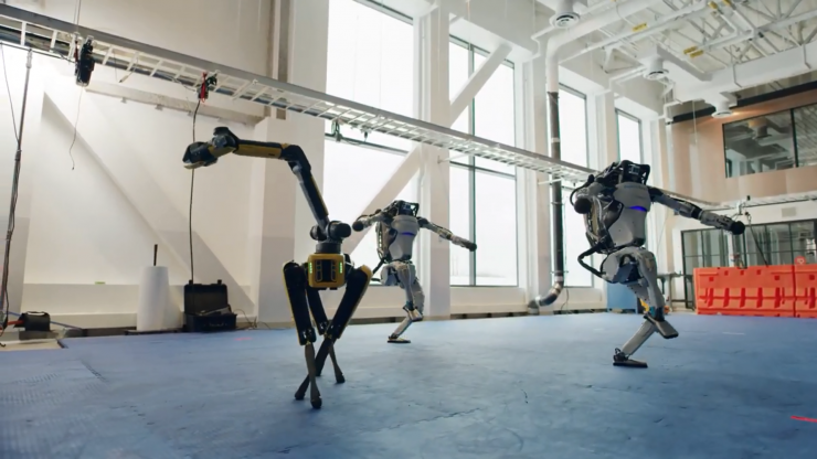 Танец выделяется хорошей хореографией. При этом чудеса гибкости в нем показывают не только антропоморфные роботы Atlas, но и четвероногий Spot, а также Handle - робот, созданный для перемещения грузов на складах. Atlas, как выяснилось, умеет балансировать на одной ноге, подбрасывать ноги в воздух. Spot может изображать балерину, а Handle делает изумительные движения своей шеей.