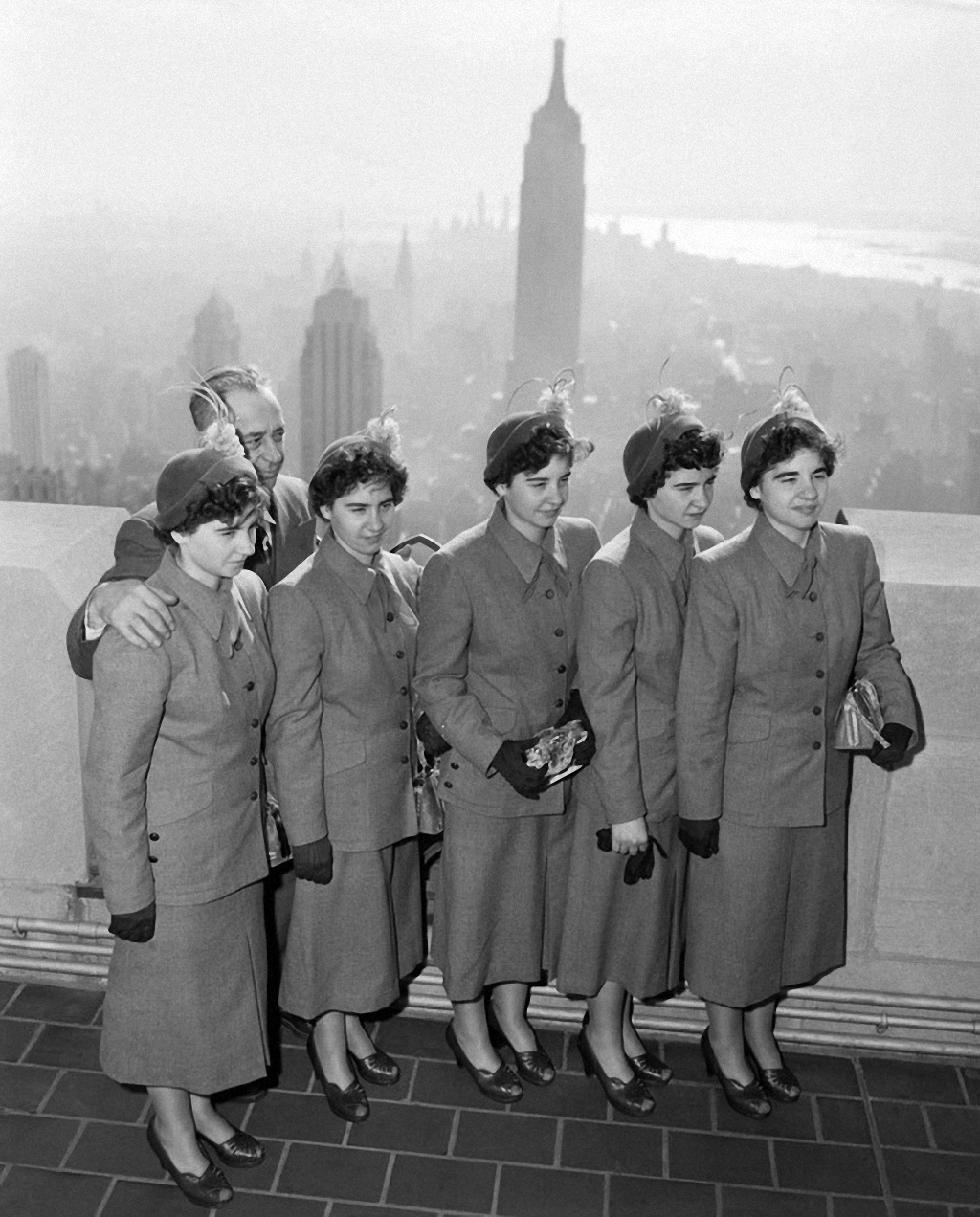 Дальнейшая судьба сестер была весьма печальной. В 20-летнем возрасте погибла Эмили, которая рано ушла в монастырь, где у нее обнаружились эпилептические припадки, которые и стали причиной преждевременной смерти. Для ее сестер это было настоящим ударом. На фото: сестры-близнецы с отцом в Rockefeller Center в Нью-Йорке, 20 октября 1950 года.
