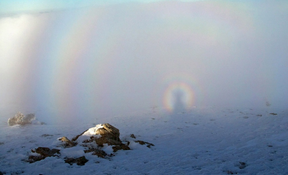 Брокенского призрака можно встретить в горах во время тумана. Это случается, если смотреть в сторону, противоположную солнцу. Чаще всего призрак будет окружен радужным сиянием - глорией.