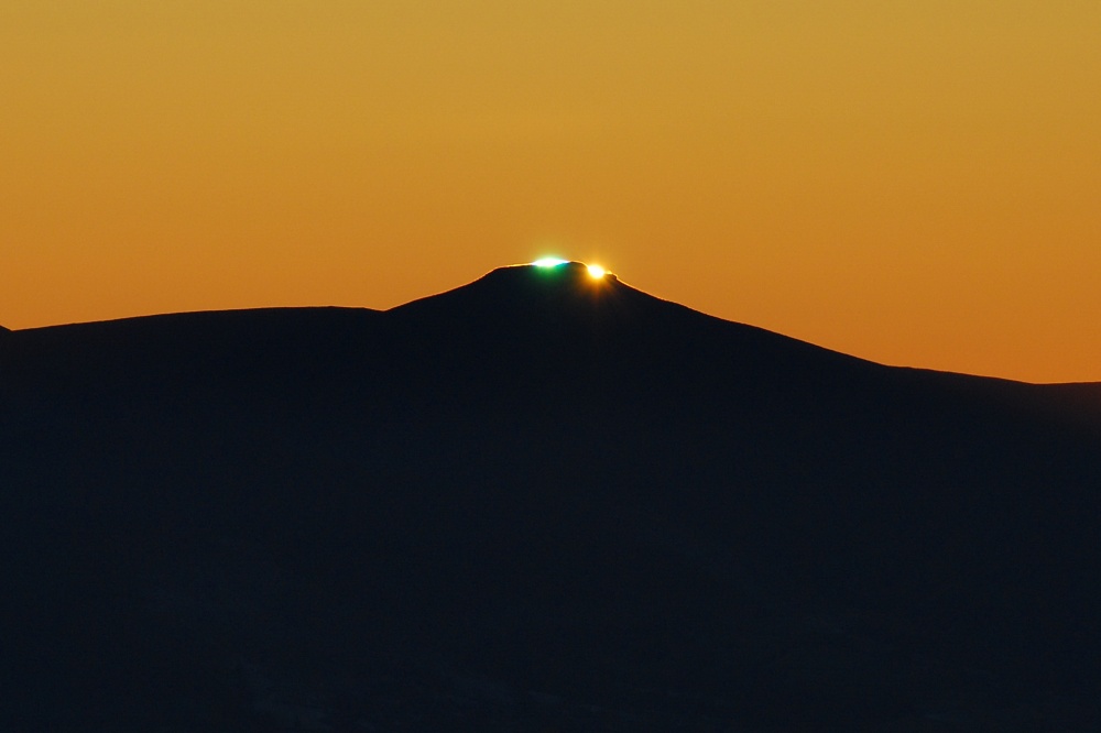 Зеленый луч появляется с первыми лучами рассвета или с последними лучами заката. Пронаблюдать это трудно, да и опасно для глаз. Плюс нужно несколько условий: открытый горизонт, чистый воздух и безоблачная погода. Этот зеленый луч, например, фотограф увидел только разгребая фотографии, сделанные в тот день.