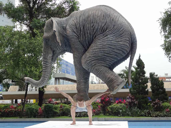 На площади Гонконга установлена скульптура "балансирующего слона на спине человека", автором которой является Фабьен Мерелли