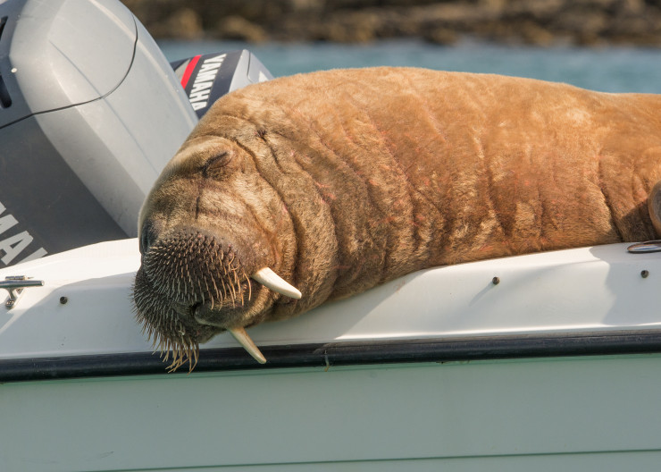 Под огромным весом моржа лодка немного накренилась, но Уолли это никак не волновало, и он продолжил умиротворенно отдыхать.