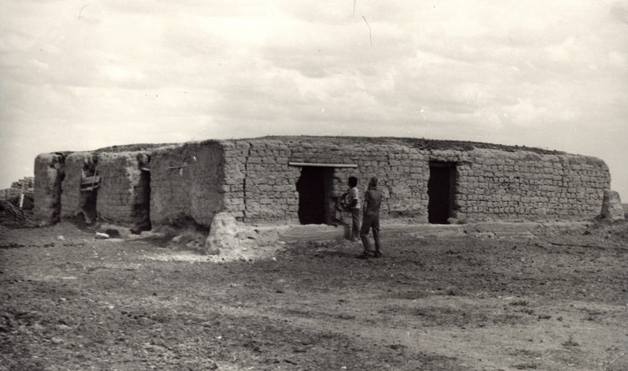 Школа, построенная по инициативе Садуакасова в 1930 году в Акмолинском уезде. Снимок сделан в 1981 году.