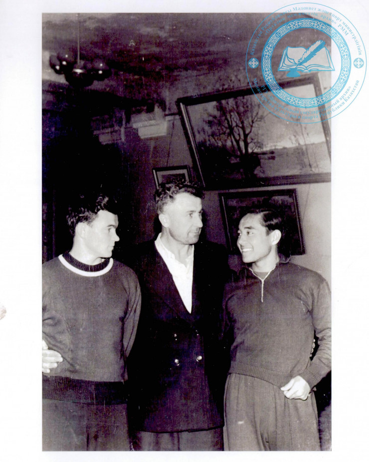 Кисляков А., Сегизбаев Т.С. со своим первым тренером Козелько Г.А., 1955 г. ЦГА РК