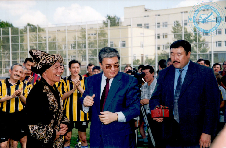 Премьер-министр Республики Казахстан Касым-Жомарт Токаев во время поздравления Сегизбаева Т.С. в честь его 60-летия, 2001 г. ЦГА РК