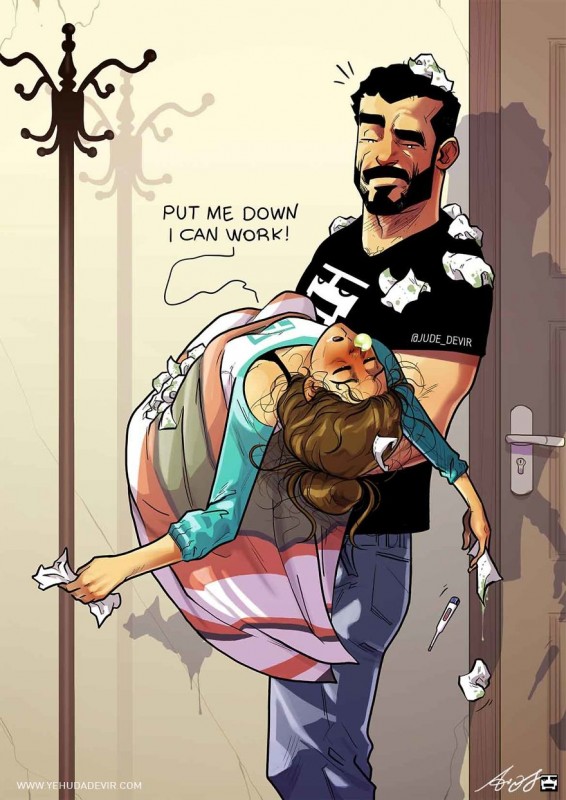 Иегуда Девир из Тель-Авива создает чудесные комиксы о ежедневных домашних приключениях со своей супругой Майей. Каждый день иллюстратор черпает вдохновение в повседневных ситуациях и переносит их на бумагу.