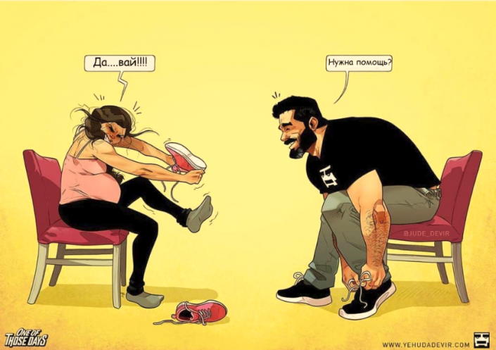 Самое большое счастье в жизни супружеской пары - стать родителями. С появлением детей семейные узы крепчают. Влюбленные понимают, что несут ответственность не только друг за друга, но и за чадо, которое не перестает радовать и удивлять. TengriMIX продолжает делиться забавной серией комиксов израильского художника Иегуды Ади Девара.