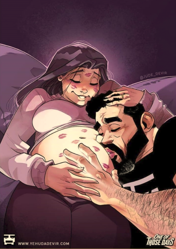 Мы ранее рассказывали о том, что Иегуда создает яркие и смешные иллюстрации, в которых отражает реальные моменты совместной жизни с красавицей-женой Майей. И остановились на том, что муж и жена решили завести ребенка.