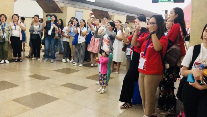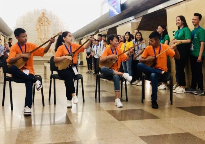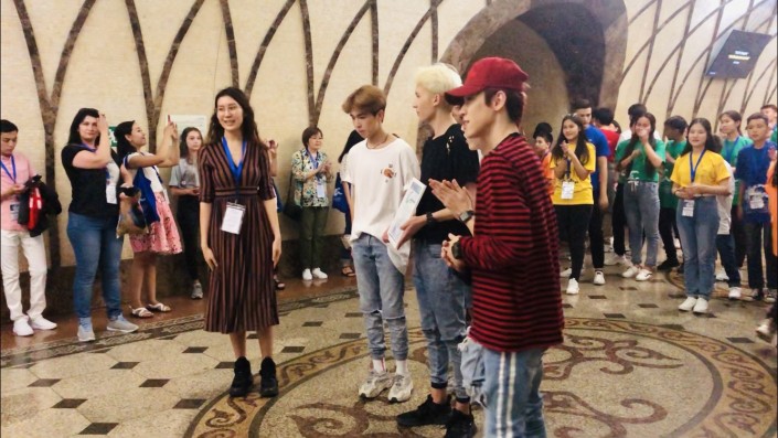 Участники финального этапа "IV Академии творчества Клубов ЮНЕСКО" решили поддержать всемирное движение арт-мобов на станции "Жибек жолы" и станцевать под любимый хит Ulala группы Mad Men.