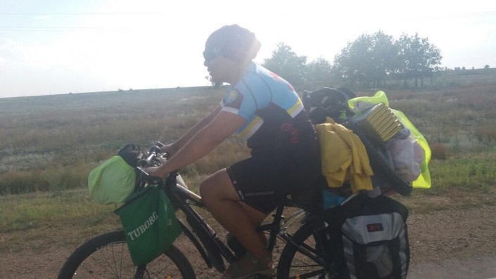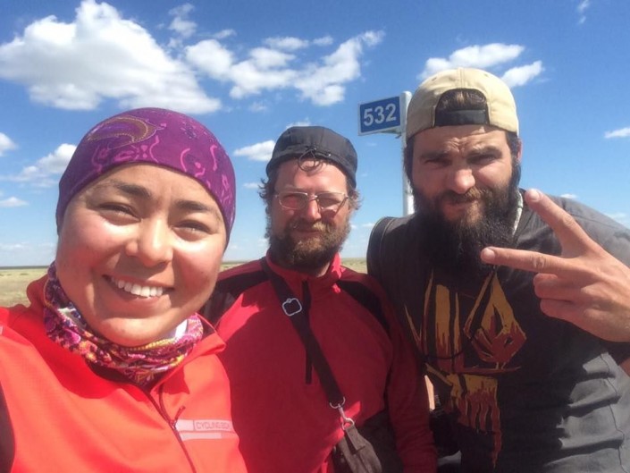 Дело в том, что казахстанка давно хотела увидеть мир. Однажды она поняла, что для осуществления мечты недостаточно просто мыслей, нужны хоть какие-то действия. И она решилась. Взяла да уехала на машине в Актобе к подруге, потом погостила у родственников и рванула на велосипеде в Костанай. По пути она повстречала таких же путешественников - Василия из России и Валерия из Беларуси. Три дня они вместе ехали до Костанайской области, затем разошлись - у мужчин был иной маршрут.