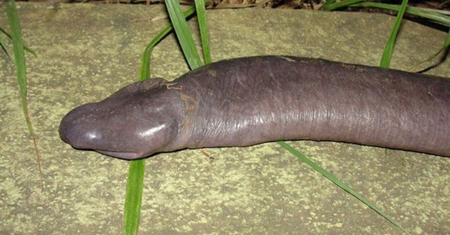 Водяное безногое земноводное Atretochoana eiselti из семейства водяных червей.