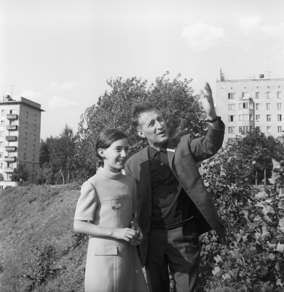 Итальянский детский писатель Джанни Родари с дочерью на V Международном московском кинофестивале. Лето 1967 года. © Галина Кмит/РИА Новости