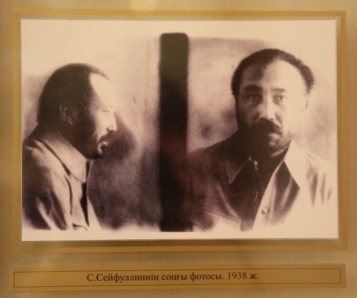 Другой зал рассказывает о нелегких последних днях писателя перед его смертью: Сакен Сейфуллин погиб в 1938 году, в годы сталинских репрессий. Здесь есть протоколы обыска, копии заключения обвинения и документы об исполнении приговора, о расстреле Сакена Сейфуллина. О сложной судьбе, пережитом аресте и заключении автор пишет в своей книге "Тернистый путь". Оригинал в арабской графике хранится в музее.