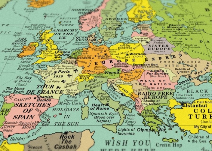Дизайнеры британской студии Dorothy маленько пофантазировав, обозначили страны и города названиями песен, на их взгляд, подходящими по смыслу для описания регионов. Так появилась ироничная музыкальная карта World Song Map.