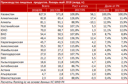 Именно производители Алматинской области и ключевого мегаполиса - Алматы - обеспечили наибольший вклад в пищепром РК - 26,1 процента. Еще 12,7 процента пришлось на Костанайскую область.