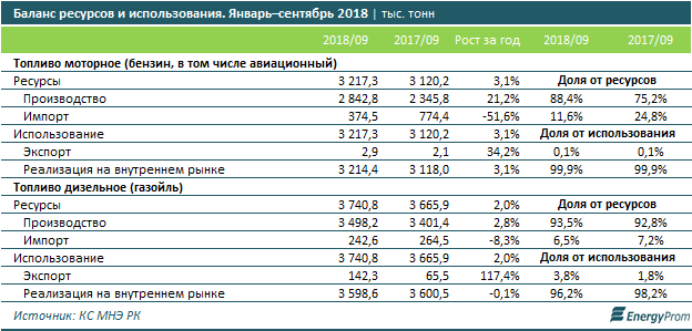 За 10 месяцев текущего года в Казахстане было произведено 3,3 миллиона тонн бензина (в том числе авиационного), что на 27,3 процента больше, чем в аналогичном периоде годом ранее. Благодаря росту производства и политике импортозамещения в секторе, импорт бензина сократился почти на 52 процента за год, до 374,5 тысячи тонн. Экспорт увеличился на 34,2 процента за год, однако его объемы ожидаемо незначительны - всего 2,9 тысячи тонн.
