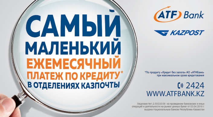 Кредиты без залога и с самым низким платежом теперь можно получить, не приходя в АТФБанк, в любом из 800 отделений "Казпочты".