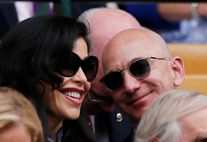 55-летний американский миллиардер появился с 49-летней телеведущей Лорен Санчез на мужском финале Уимблдонского турнира в Лондоне. Пара наблюдала за противостоянием Новака Джоковича и Роджера Федерера с VIP-трибуны. Безос и Санчез выглядели влюбленными, улыбались друг другу и сидящим неподалеку принцу Уильяму и Кейт Миддлтон.