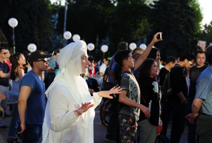 Подготовка к фестивалю на месте началась в конце прошлой недели. Сейчас перед Дворцом Республики обустраивается площадка, устанавливаются новые декорации. Часть из них была специально произведена к фестивалю этого года, часть - обновленные конструкции прошлых лет. Непременно будут знаковые статуи фестиваля балбалы - фигуры-тотемы, созданные по мотивам каменных степных изваяний. Они установлены у сцены, с ними любят фотографироваться гости фестиваля.