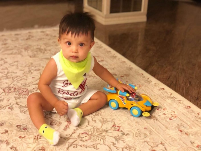 Казахстанский певец Айкын Толепберген и его молодая супруга, экс-солистка "КешYou" Жулдыз Омиргали обнародовали в Instagram фото годовалого сына Санжара.