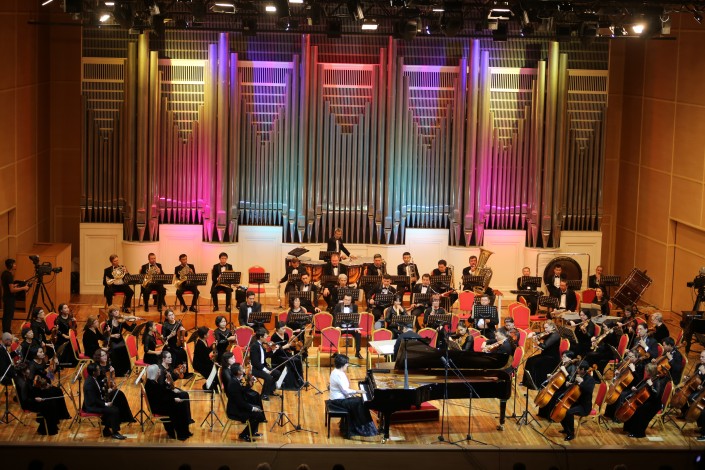 Программа концерта была сложная и яркая. В первом отделении оркестр исполнил Первую симфонию Яна Сибелиуса, а второе отделение открыла увертюра к опере "Летучий голландец" Рихарда Вагнера. Безусловной кульминацией концерта стала легендарная "Рапсодия на тему Паганини" С. Рахманинова в исполнении не менее легендарной казахской пианистки Жании Аубакировой.