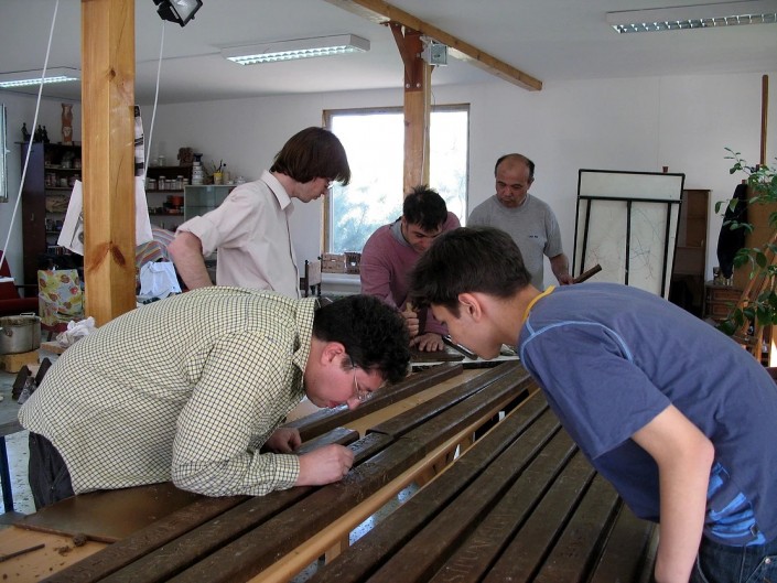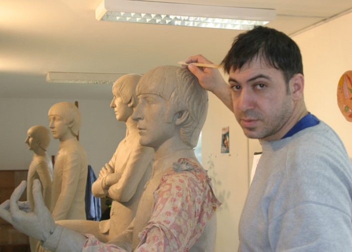 "Ескерткіштің идеясы демеушілерге тиесілі. Оны жасауға бір жыл кетті. Жұмысты 2006 жылы бітірдік, ол менің шеберханамда бір жылдай тұрды, себебі орнатуға рұқсат ала алмадық. Сол уақытта жергілікті және шетелдің битломандары мен қатар журналистер де оны көру үшін шеберханаға жиналатын. Меніңше, бұл есткерткіштің қасында тұрып әншілердің өмірде қандай болғанын сезінуге болады", - дейді мүсінші.