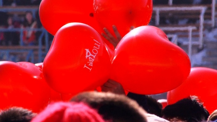 В конце мероприятия из аэростата были рассыпаны несколько тысяч воздушных шариков, в виде сердечек. Что ж, ждем следующий Dizzy Love Day!