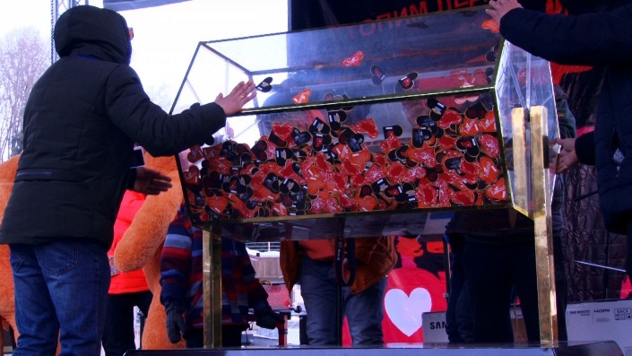 Под конец мероприятия прошел розыгрыш главных призов и подарков: среди них были гаджеты, бытовая техника, мягкие игрушки, а в качестве основного приза выступило романтическое путешествие. Причем выбор его направления был оставлен за победителем - он сам мог выбрать страну и город.