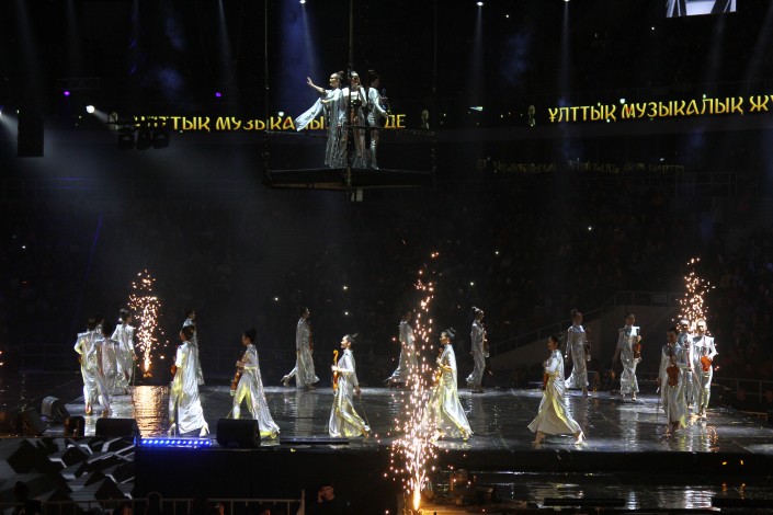 Церемония вручения национальной музыкальной премии "Жыл таңдауы 2017" состоялась в Алматы, передает корреспондент Tengrinews.kz. Грандиозное шоу прошло в ледовом дворце "Алматы Арена".