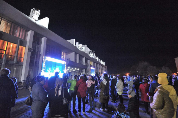 Зрительный зал городского дворца культуры, рассчитанный на тысячу человек, не смог вместить всех желающих. Специально для этого компания "АрселорМиттал Темиртау" организовала три LED-экрана на площади у ГДК.