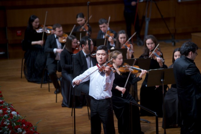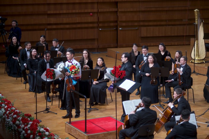 Публика также горячо принимала подающего большие надежды скрипача Жандоса Мухамеди, который блестяще исполнил Концерт для скрипки с оркестром ми минор ор. 64 Феликса Мендельсона Бартольди. После бурных оваций Жандос Мухамеди на бис исполнил "Размышление" Массне.