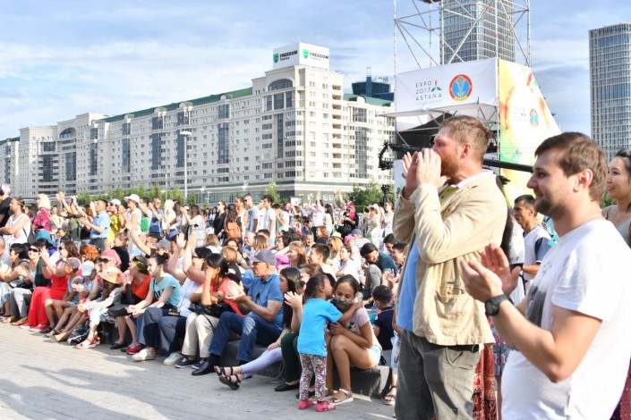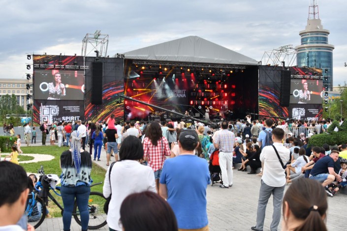 В самом разгаре второй день фестиваля современной этнической музыки The Spirit of Astana, который столица Казахстана принимает впервые, передает корреспондент Tengrinews.kz. Крупнейшее музыкальное событие проходит в формате open-air на площади перед монументом "Байтерек", вход свободный. Проект учрежден национальной радиостанцией Tengri FM при поддержке акимата Астаны.