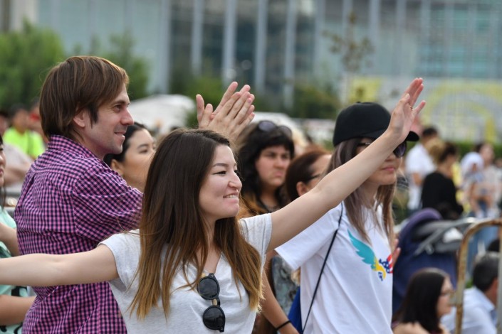 Гости The Spirit of Astana не удержались от танцев под зажигательную балканскую музыку от Jjubojna