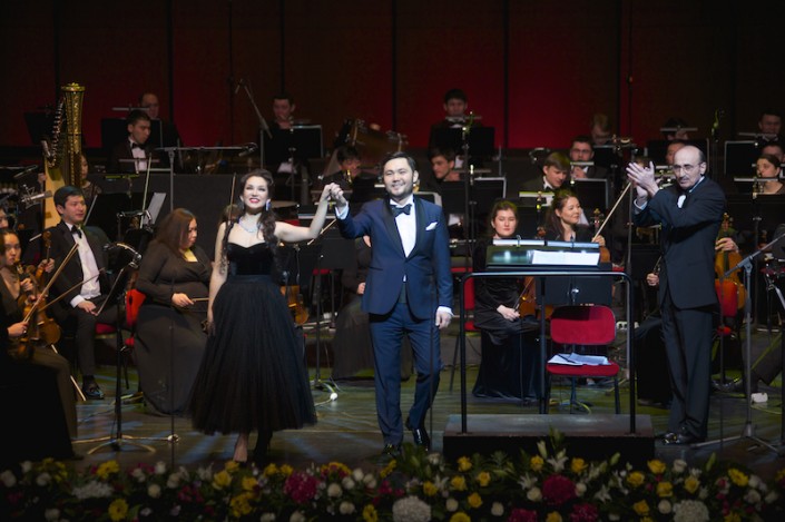 Вполне ожидаемо, что в зале на 1250 человек не было ни одного свободного места. С приветственным словом перед слушателями выступил министр культуры и спорта РК Арыстанбек Мухамедиулы. "Музыкальная жизнь Казахстана развивается быстрыми темпами. Солистка "Астана Опера" Мария Мудряк, 2 года назад завоевав звание лауреата самого престижного конкурса вокалистов "Опералия" Пласидо Доминго, который проходил в Астане, буквально за короткое время достигла колоссальных успехов. Сегодня Мария блистает на лучших сценах мира. Отрадно, что недавно Мария выступила с большим успехом в партии Виолетты из оперы "Травиата" Верди на сцене Королевского театра Маската (Оман), где дирижировал сам маэстро Пласидо Доминго. Все мы помним историю, как девочка из Павлодара стала обладательницей гранта "Болашак", автором этой программы является Лидер нации Нурсултан Назарбаев. И сегодня мы имеем возможность услышать прекрасное пение Марии Мудряк. Также этим вечером выступит замечательный тенор, ведущий солист "Астана Опера" Медет Чотабаев, который стал обладателем престижной первой премии Международного конкурса имени Глинки (Москва). Его также с удовольствием приглашают выступать в лучшие театры мира. Оркестром будет дирижировать прославленный музыкант Илья Машкевич", - отметил Арыстанбек Мухамедиулы.