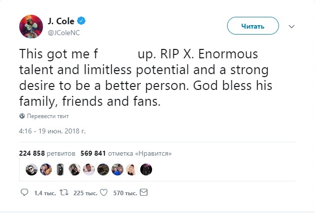 "Покойся с миром X. Бог благословит его семью, друзей и фанатов", - написал он в Twitter.