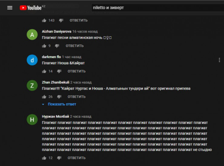 Ранее российский блогер Сергей Пичугин у себя на странице в TikTok опубликовал видео, в котором полагает, что исполнители NILETTO и Zivert сплагиатили песню у Кайрата Нуртаса.