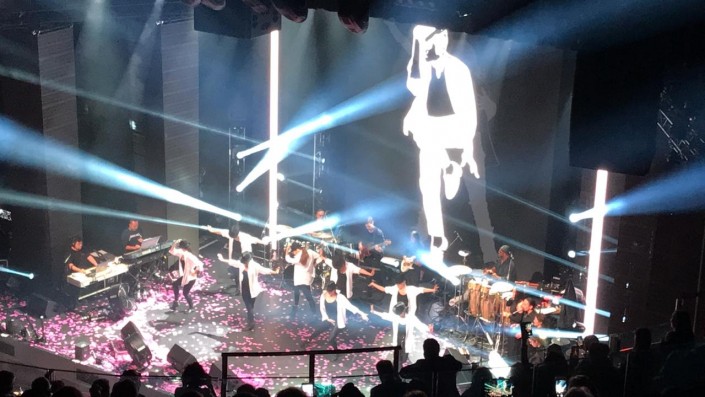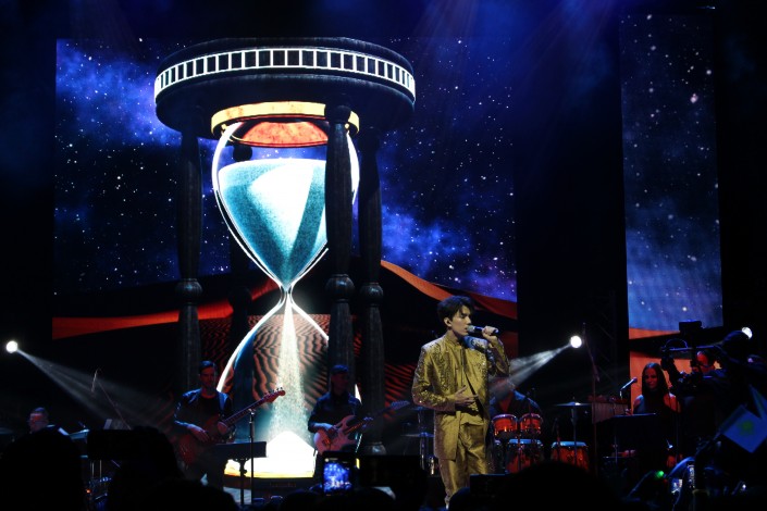 Все действия на сцене сопровождались исполнением live-band, танцевальными представлениями и номерами с 3D-эффектами.