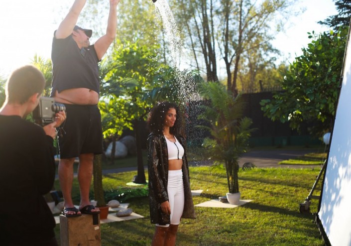 "Основной упор был сделан на атмосферу лета, тепла и радости. И в день съемок вышло солнышко,  температура поднялась до 20 градусов. Ночные съемки под водой были, конечно, тяжелыми из-за низкой температуры на улице. Актерам пришлось надевать гидрокостюмы. Но, к счастью, все было без происшествий", - отметил Медет.