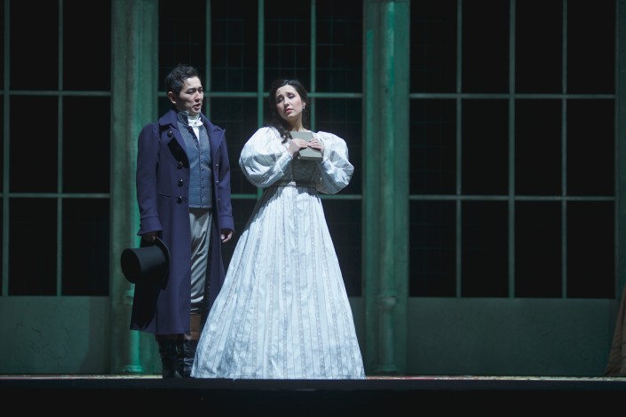 Молодая Татьяна (Айгуль Ниязова, Галина Чеплакова), образ которой создали Пушкин и Чайковский, вернула публику в свою юность, вновь встретила своего Евгения (Алексей Исаев, Талгат Мусабаев) и вновь решила остаться верной супругу Гремину (Барсег Туманян, Михаил Гужов). Артисты демонстрировали легкость, чистоту вокала, каждый из них грамотно подошел к своим партиям как вокально, так и актерски. Образ резвой, живой, кокетливой и шаловливой младшей сестры Ольги великолепно получился у Дины Хамзиной и Татьяны Вицинской.