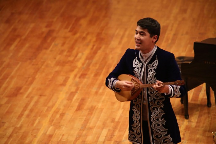 В исполнении смешанного хора консерватории под руководством дирижера Яна Рудковского прозвучали произведения казахстанских композиторов Абдинурова "Қуырмаш", Хромовой "Отан". Кроме того, своим исполнением гостей вечера порадовали Ансамбль скрипачей, Ансамбль кобызистов, Ансамбль жетигенов, Кюй-тартыс баянистов, а также лауреаты международных и республиканских конкурсов Марина Алтухова, Анна Мельникова, Нурболат Исаев, Ергали Агайдаров.