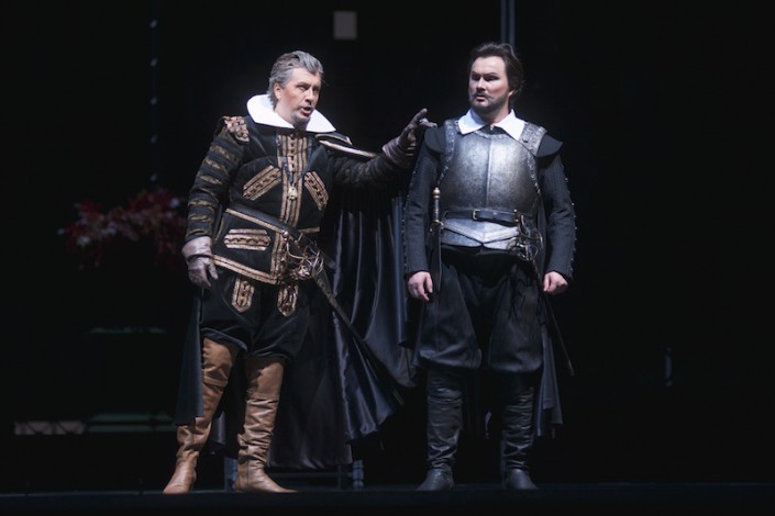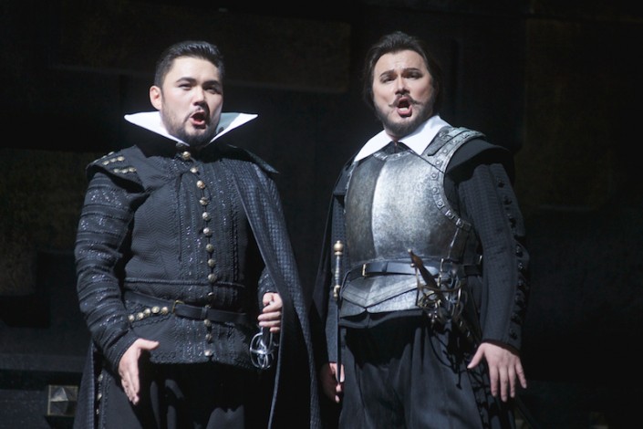 Говорить о вокальных лидерах в "Доне Карлосе" можно долго. Уверенное звуковедение и хорошая подача текста ведущих артистов заслуживают отдельных аплодисментов. В сложнейшей партии Елизаветы Валуа на сцене блистала Жаннат Бактай. Сопрано вызвала большую симпатию у зала. Певица демонстрировала музыкальную выразительность, яркие низы и верха, богатые филировки и пиано. Видно было, что все движения артистки отточены, по-королевски величавы, но в то же время мягки и женственны.