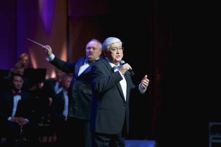 Творческий вечер украсило участие хора театра "Астана Опера" и эстрадно-симфонического оркестра акима Алматы под руководством Заслуженного деятеля Казахстана Александра Белякова. Музыканты блестяще исполнили "Элегию" М. Магомаева, El camino real А. Рида, Salute to ol’ blue eyes Д. Мосса и другое.