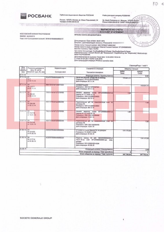 Спустя 10 дней, согласно выпискам со счета Фриске в Росбанке, перечисленные "Русфондом" деньги были разделены по валютам: почти 5 миллионов рублей были переведены на рублевый вклад, а еще два платежа по 10 миллионов рублей каждый были конвертированы в валюту. На долларовый депозит в Росбанке было зачислено 215 тысяч долларов, а на евровый - 173,6 тысячи долларов. Траты и движение денег были только по рублевому счету, а валюта лежала на депозитах под проценты.
