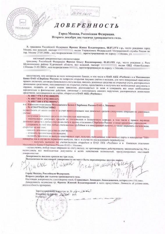 Как выяснили журналисты, 19 октября 2014 года между Жанной Фриске и благотворительным фондом "Русфонд" был заключен договор. К этому времени певица была уже больше года больна и ей требовалось дорогостоящее лечение и реабилитация. 28 октября 2014 года "Русфонд" перевел на личный банковский счет Жанны в Росбанке 25 миллионов рублей. Как отмечает издание, это были первые и единственные деньги на счету, который был открыт в рублях, долларах и евро еще в декабре 2013 года. Тогда же Жанна выписала у нотариуса доверенность на 3 года на все операции по этим счетам на свою мать - 64-летнюю Ольгу Фриске. С этого момента и до самой смерти певицы только она могла отдавать распоряжения в банк на проведение операций.