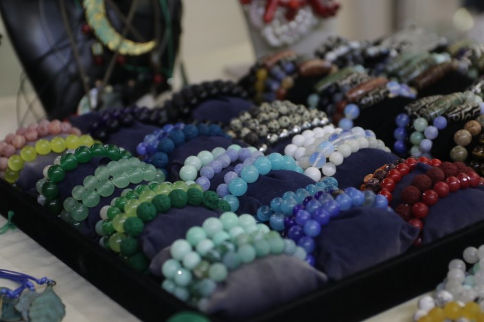 На ее столе россыпью лежат браслеты и подвески из натуральных материалов, камней, самоцветов и лавы. Собраны здесь и изделия других народов. На ярмарке можно приобрести самый распространенный индейский амулет, который охраняет хозяина от кошмаров - вязаный ловец снов.
