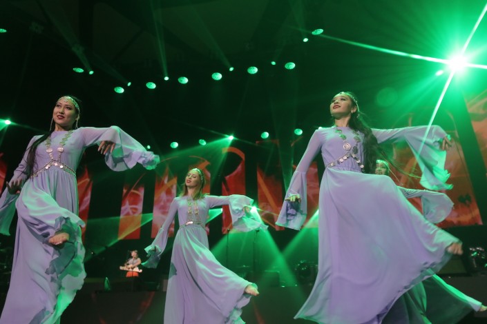 20.10 Певица Mergen и DJ Nariman Issenov продолжили шоу песней "Дауыл" под завораживающие танцы артисток из Канады.