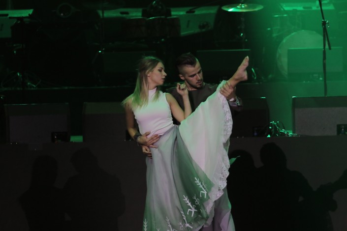 21.54 Проект ZeMe, который представляют Лайма Янсоне, DJ Monsta и танцоры Dana Zvonarjova и Janis Putnins радуют публику The Spirit of Dance национальными латвийскими танцами и музыкой.